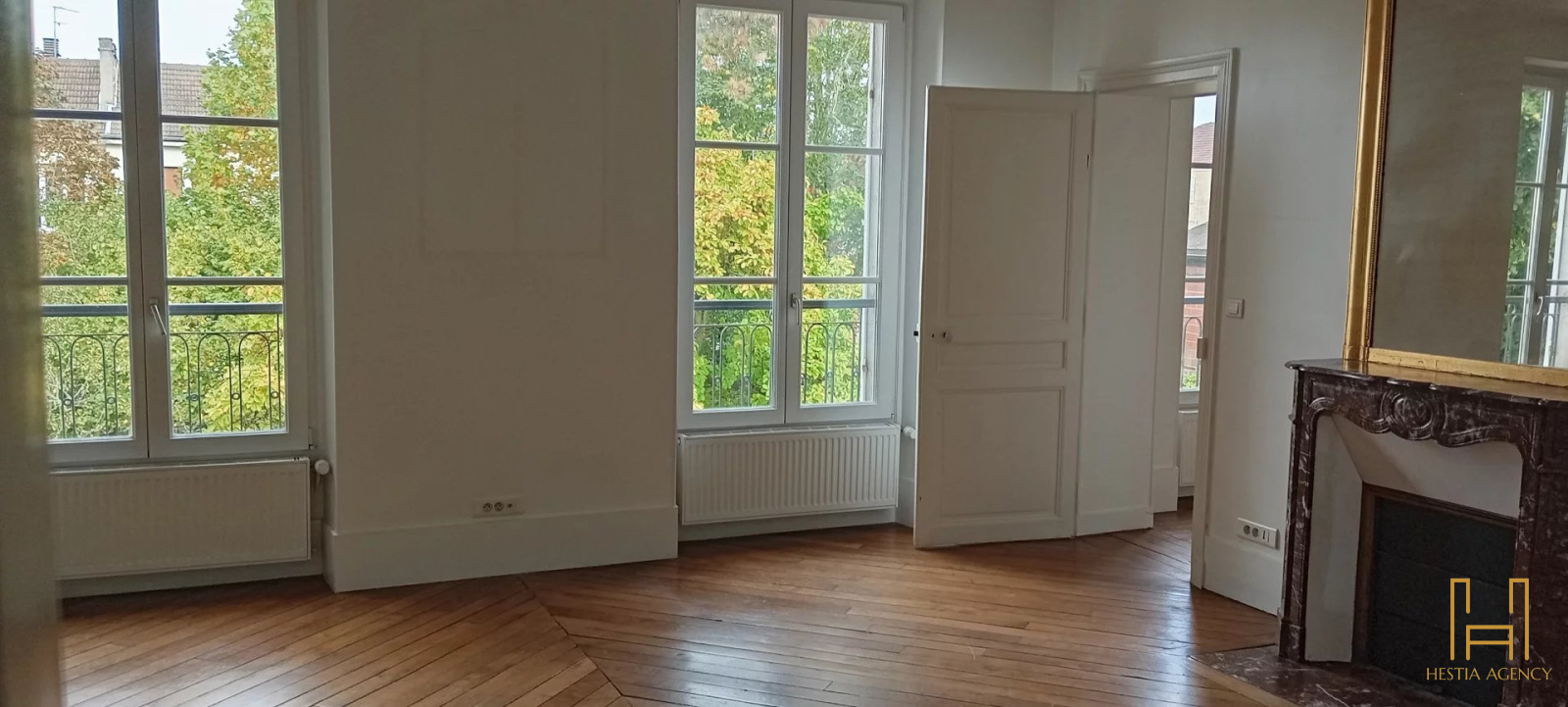 VERSAILLES - Dans un immeuble ancien du quartier Saint-Louis bel appartement familial de 5P en bon état général, 115m² au 1er étage à louer en non meublée. Il se compose d'une entrée d'un grand séjour avec parquet et cheminée, d'une cuisine indépendante, de 4 chambres, 1 SDB, 1 SDE, 2 wc et d'espace rangements. Chaudière récente neuve et double vitrage dans tout l'appartement. Loyer 2630€ charges comprises, 2450€ hors charges, honoraires agence 1695€ charge locataire. HESTIA Agency disponible même le dimanche pour acheter, louer ou vendre son bien immobilier. Estimation foncière et expertise gratuite remise sous 48H. Pour plus d'informations hestia-agency.fr