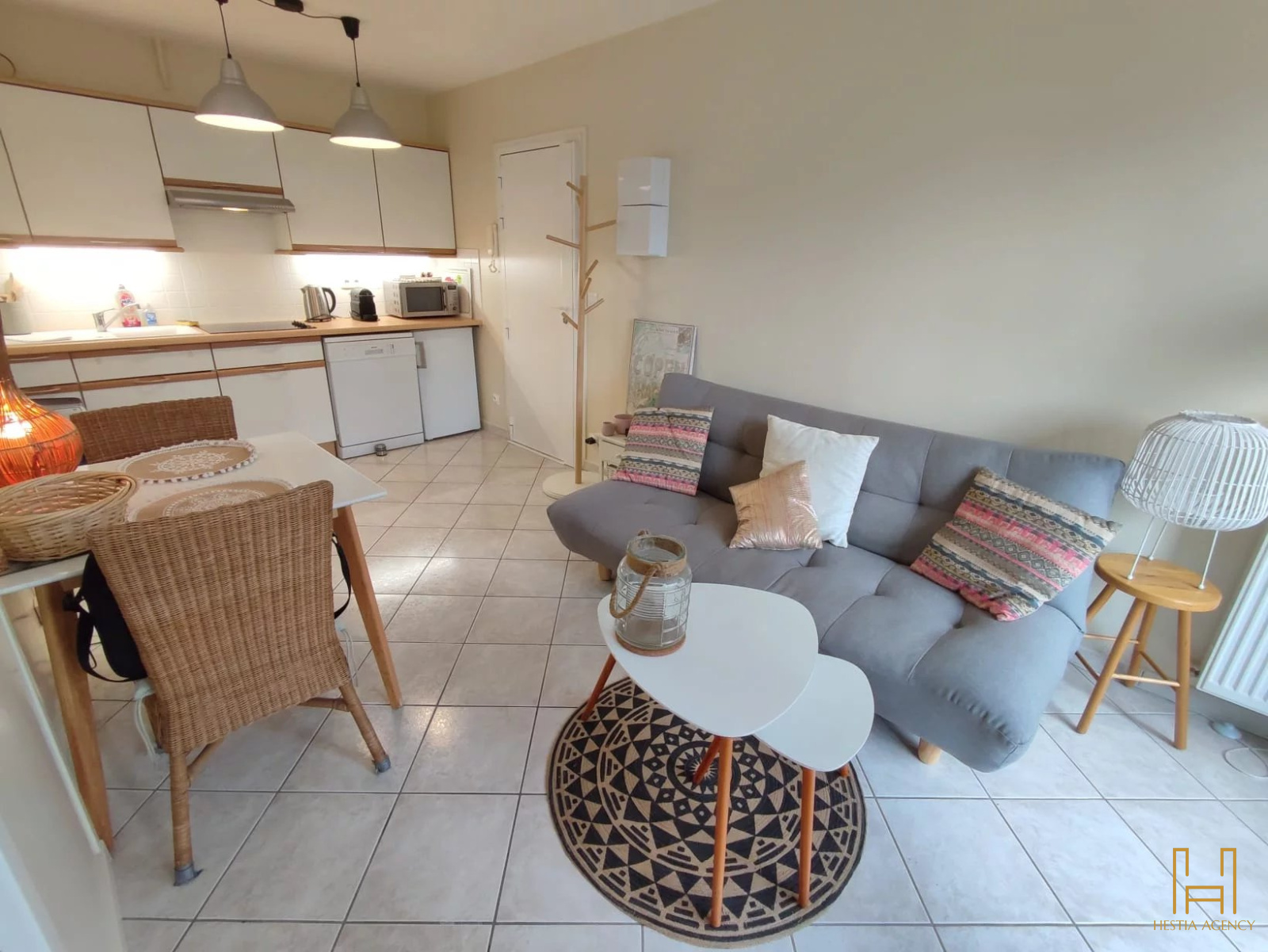 Au sein d'une résidence ravalée, bel appartement de 2P situé en REZ-DE-JARDIN loué en meublé, 33M², EXCELLENT ETAT. Il se compose d'un agréable séjour Plein SUD donnant sur terrasse avec cuisine US, d'une chambre avec un espace rangement, d'une salle d'eau et d'un WC séparé. Très belle prestation à découvrir! Un parking extérieur complète ce bien. Loué 1100€ charges comprises (eau chaude + froide et chauffage inclus), 1000€ hors charges, 495€ honoraires agence incluant visites, rédaction du bail et état des lieux d'entrée.