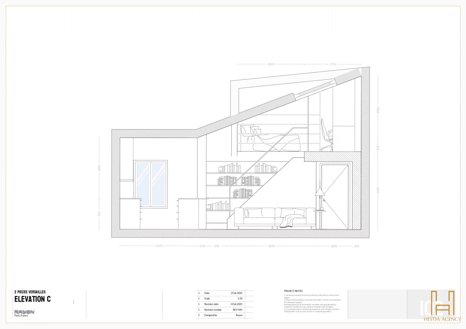 VERSAILLES - NOTRE DAME - PLACE DU MARCHE Dans un immeuble ancien disposant de parties communes en bon état général, bel appartement en DUPLEX (esprit LOFT) de 2/3P, 44m² (loi carrez) et 53.55m² (surface plancher) au 2ème et DERNIER étage donnant entièrement sur cour. Il se compose d'une entrée, d'un séjour cathédrale + une cuisine semi-ouverte (25.82m²), d'une chambre, d'un coin bureau, d'une grande salle de bain (douche et baignoire), et d'un wc séparé. Très CALME, chauffage + eau chaude individuelle électrique, situé en PLEIN CENTRE VILLE idéal pour un investissement locatif, habitation principale ou pied à terre. Prix de vente 349.000€ honoraires inclus, 339.000€ honoraires exclus, 10000€ charges acquéreur, 5 lots, 140€/mois charges copropriété, pas de procédure en cours. HESTIA Agency disponible même le dimanche pour acheter, louer ou vendre son bien immobilier. Estimation foncière et expertise gratuite remise sous 48H. Pour plus d'informations hestia-agency.fr
